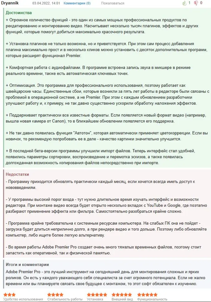 Отзывы об Adobe® Premiere® Pro: мнения пользователей
