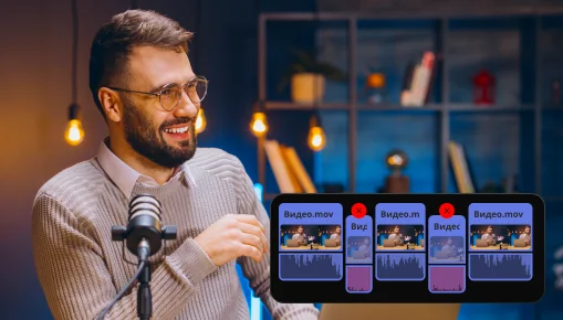 - Видеоредактор: нарезка, склейка, автосубтитры, удаление шума