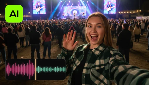 Улучшайте качество звука за один клик. Искусственный интеллект быстро очистит звуковую дорожку от шума ветра, машин и даже чужих голосов.