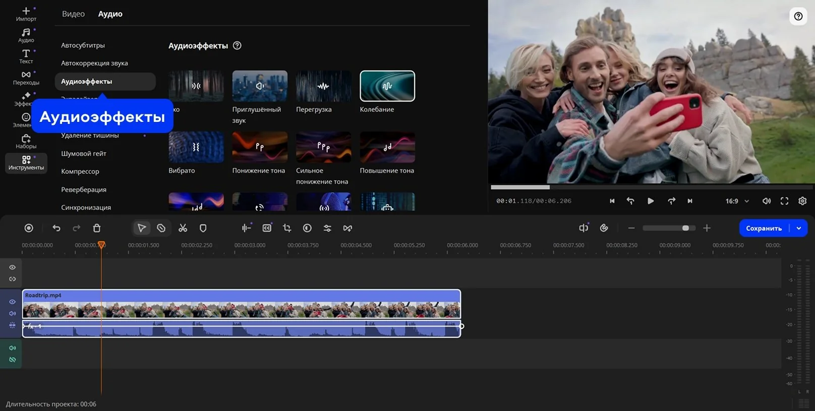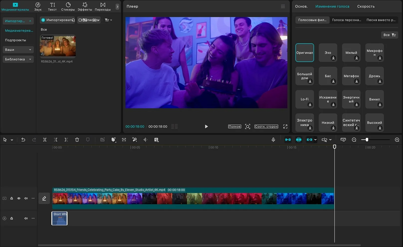 Для изменения голоса в видео без CapCut попробуйте российский аналог – программу Мовавика Видео. У редактора дружелюбный интерфейс и больше десяти реалистичных эффектов для изменения голоса в постоянно расширяющейся библиотеке.