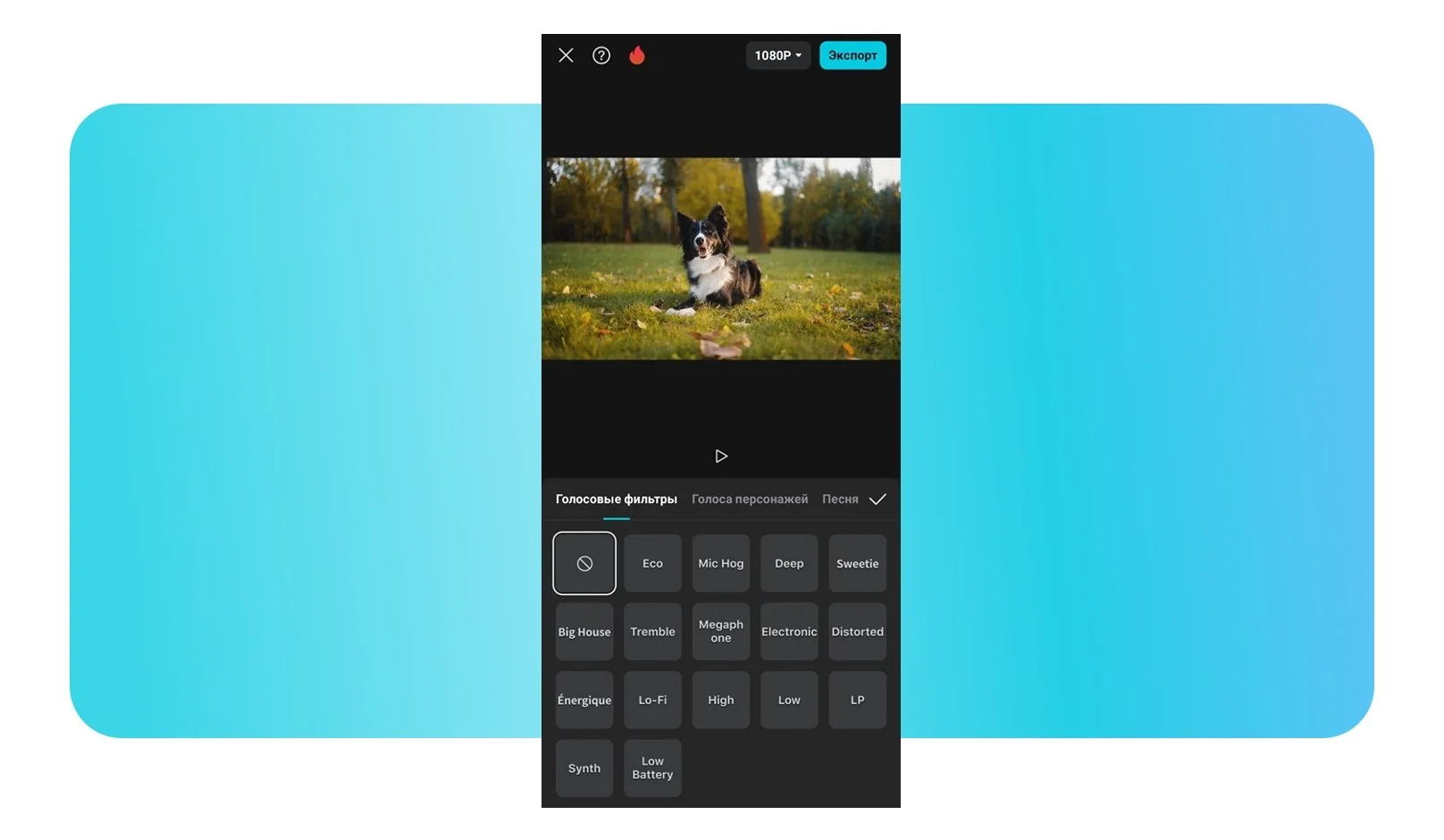- Воспользуйтесь подходящим голосовым фильтром, чтобы наложить эффект винила или добавить эхо. Обработанные фильтром голоса меняются не радикально и остаются узнаваемыми.
