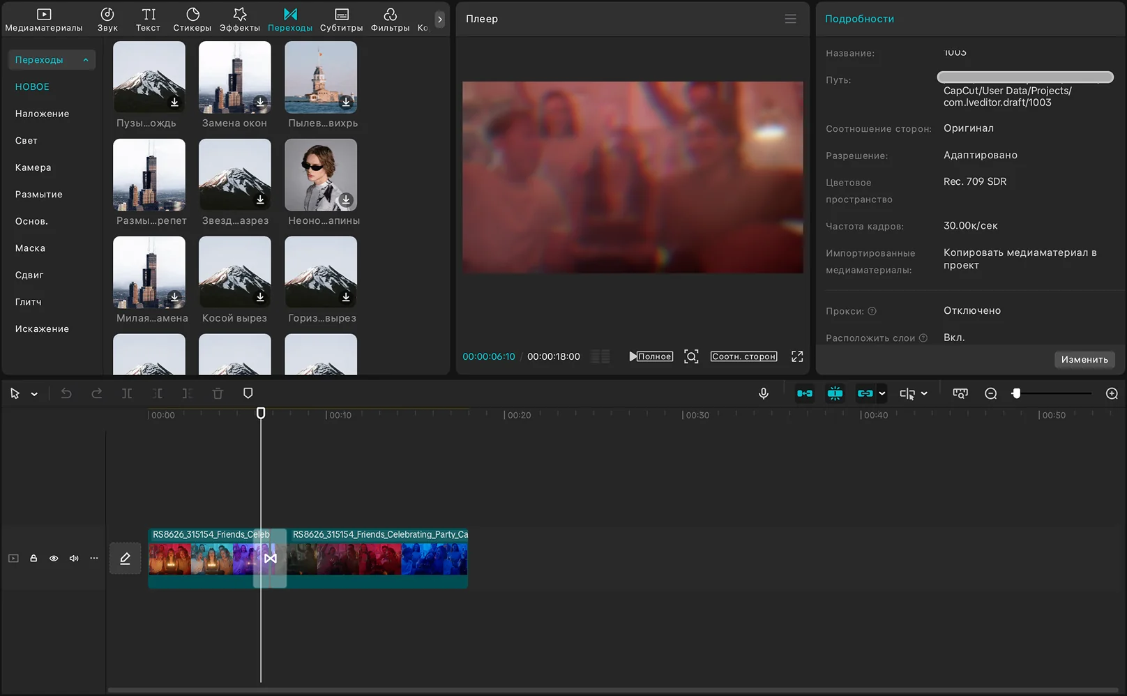 Как сделать переход в CapCut на ПК