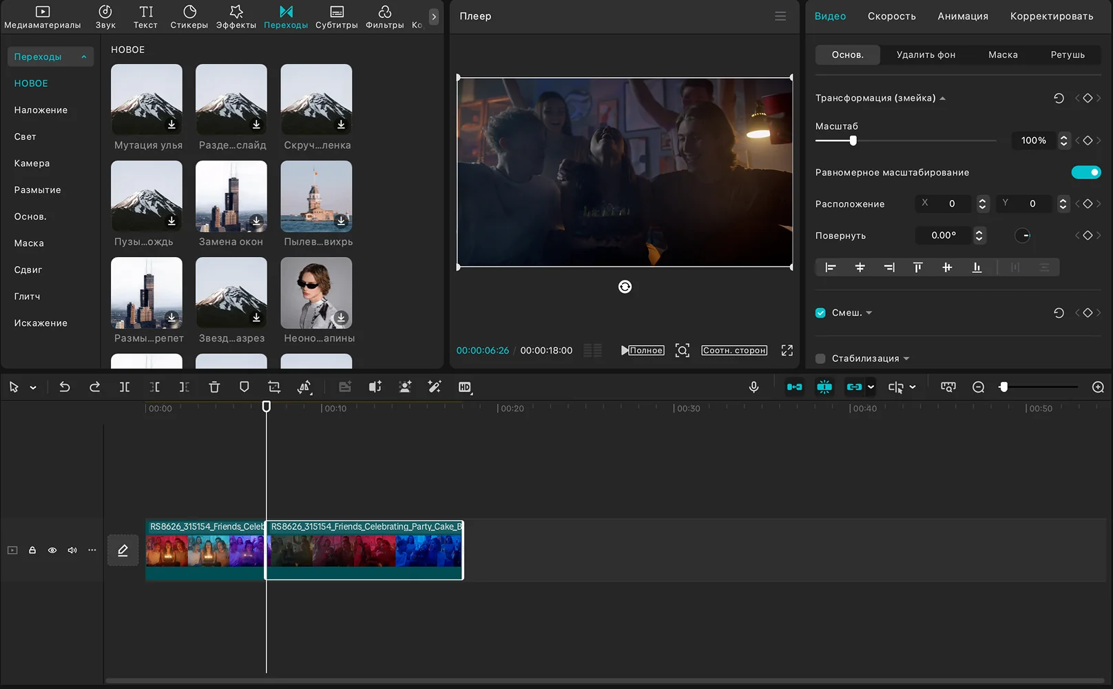 Альтернатива CapCut: как сделать переход в Мовавика Видео