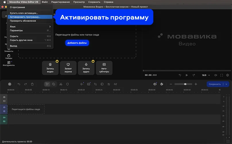 Запустите программу. В меню приложения выберите пункт Активировать программу.