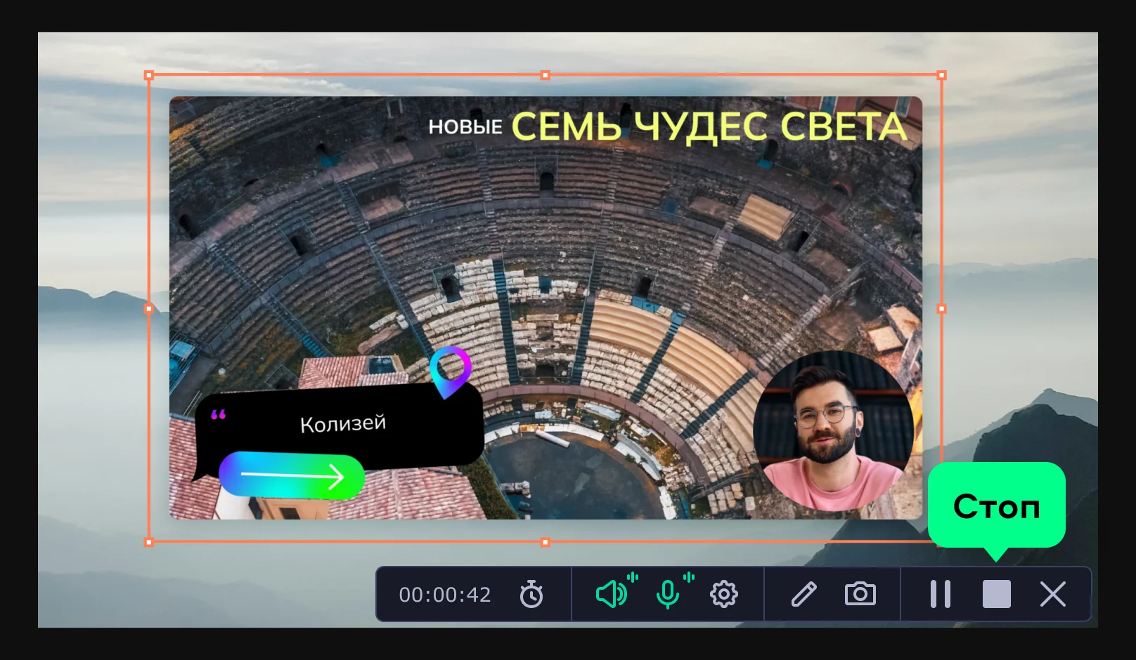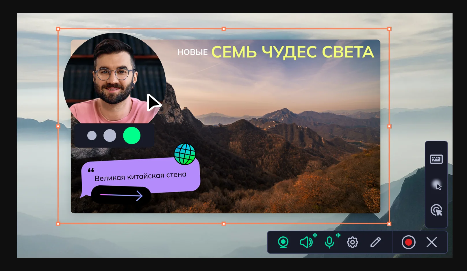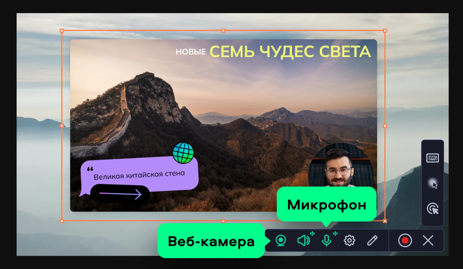 Легко добавляйте изображение с веб-камеры на свои записи. С ним ваши видеоуроки, презентации и резюме будут выглядеть профессионально и надёжно держать внимание зрителей.