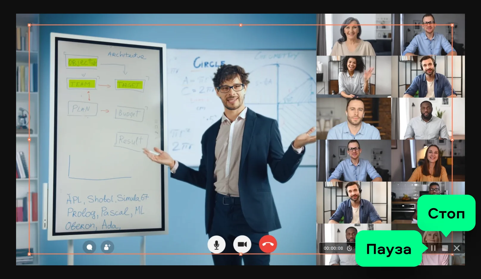 Запись экрана поможет не упустить ничего важного. Записать можно как весь экран, так и отдельную область – сохраняйте звонки, вебинары, лекции и многое другое.