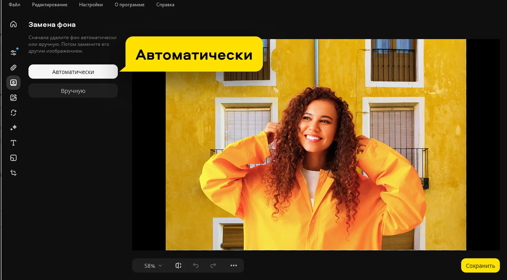 Нажмите на Автоматически, и задний план изображения исчезнет – ИИ заменит его на прозрачный фон.