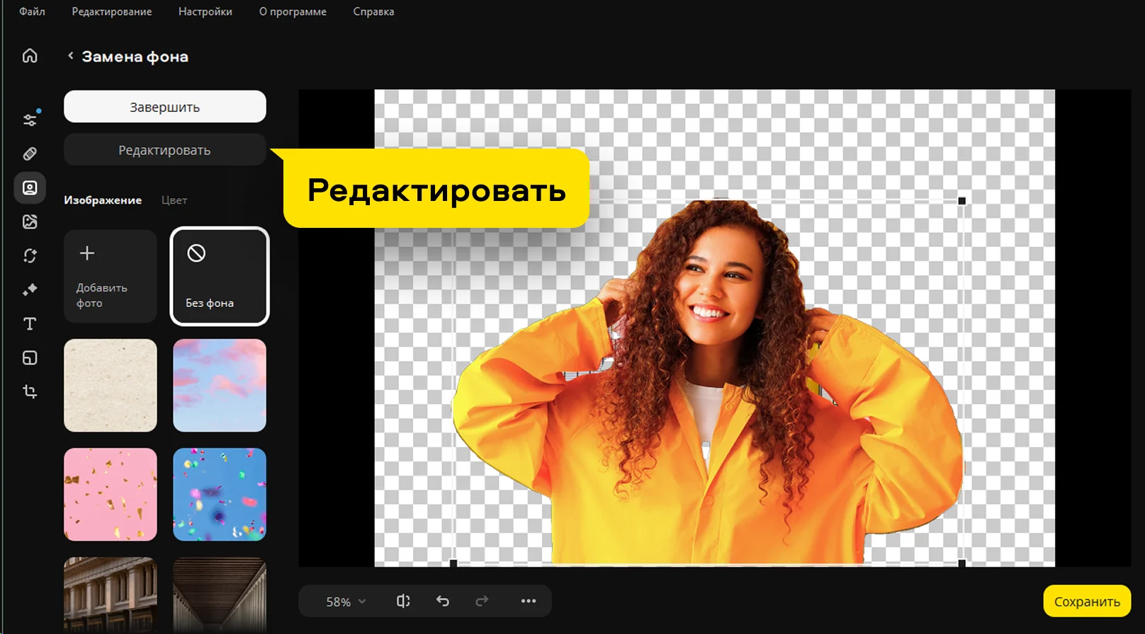 Если ИИ удалил лишнее или, напротив, убрал недостаточно, нажмите на кнопку Редактировать.