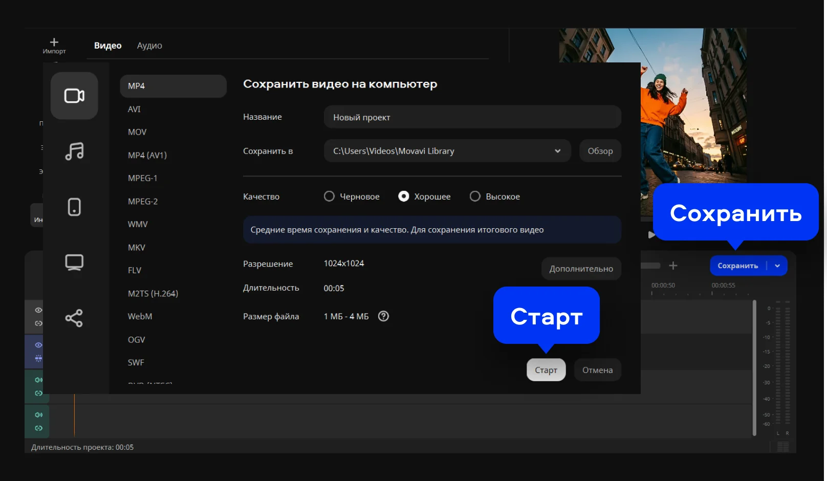 Скачайте Мовавика Видео и запустите установочный файл. Следуйте инструкциям на экране – установка пройдёт быстро. После этого программа откроется автоматически.