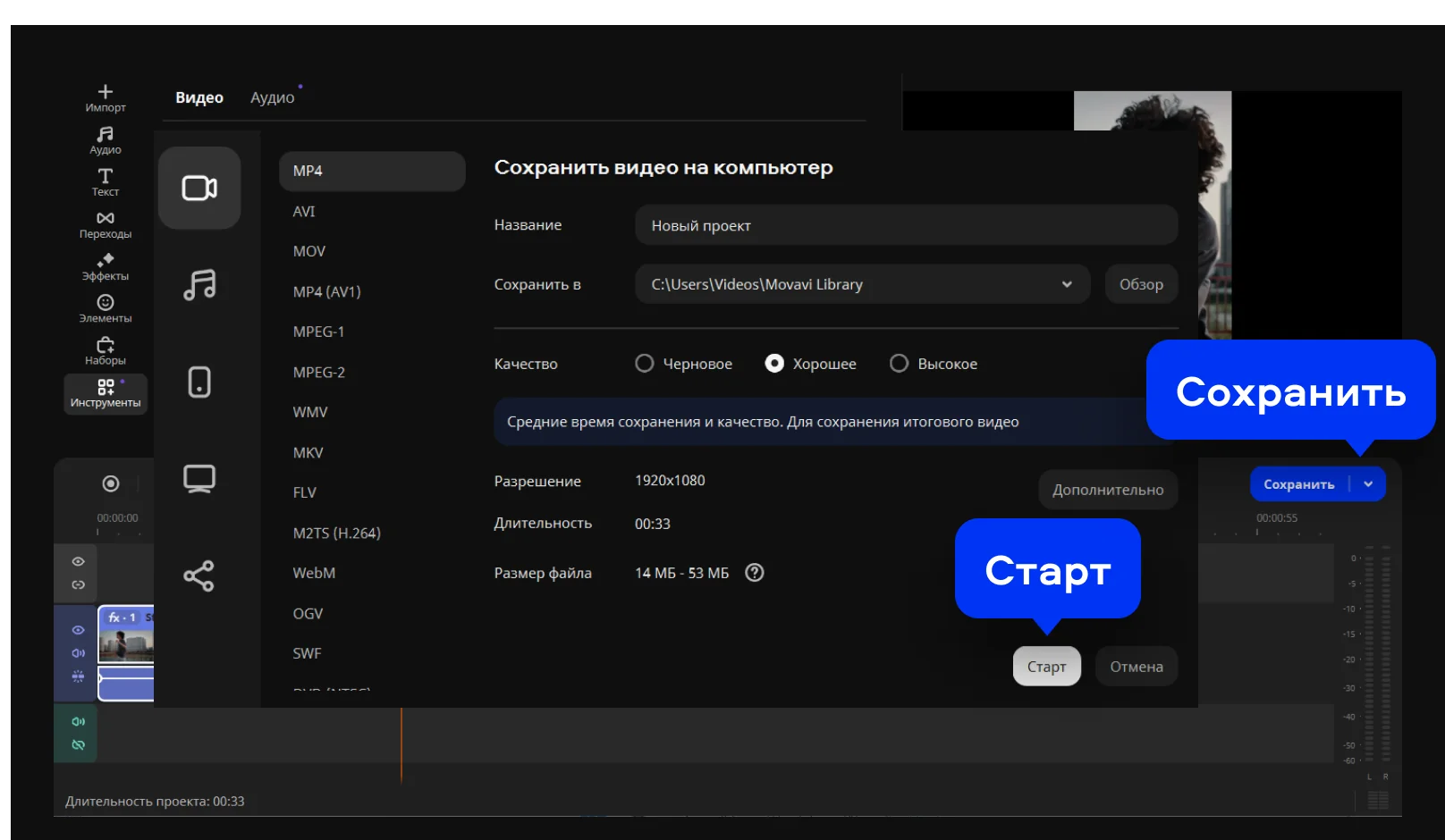 Скачайте Мовавика Видео и запустите установочный файл. Следуйте инструкциям на экране – установка пройдёт быстро. После этого программа откроется автоматически.